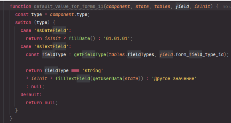 - component — это текущий компонент к которому будет добавлена функция автозаполнения. Пример в switch/case — это HsDateField или HsTextField;