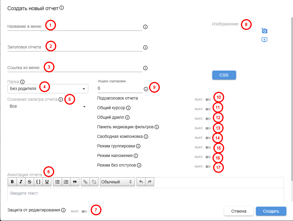 - «Аннотация отчета» — заполните текстовое многострочное поле для описания отчета.