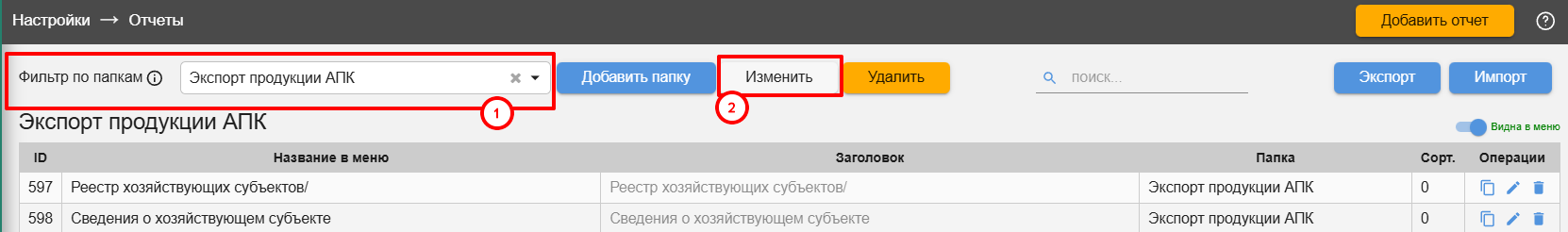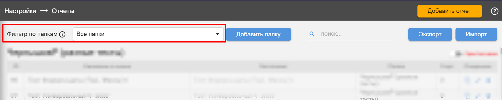Для настройки папок и отчетов перейдите в раздел «Настройки/ Отчеты».