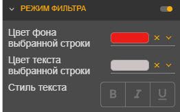 Если ранее в разделе «Колонки» было настроено поле «Конвертация в гиперссылку», то при включении режима фильтра конвертация во всех колонках станет недоступна (опция выключится).