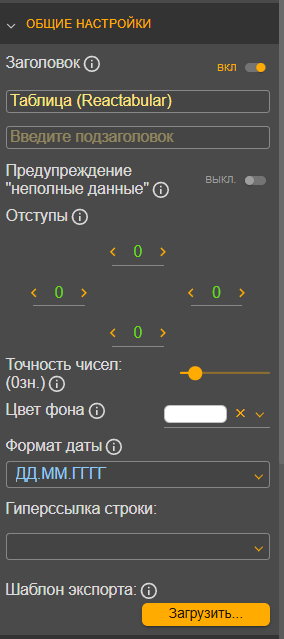 В разделе «Общие настройки» устанавливаются общие настройки таблицы. Заполните поля: