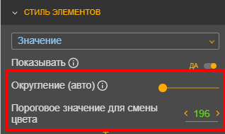 - «Пороговое значение для смены цвета».