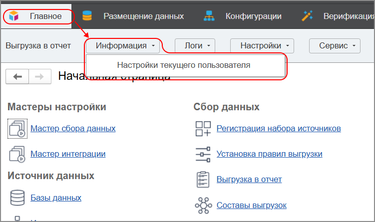В структуру «Главное/ Информация» добавлен раздел «Настройка текущего пользователя» — реализована возможность смены и установки пароля текущим пользователя.