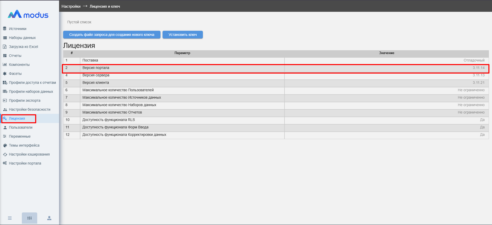Перейдите в раздел «Лицензия» в настройках портала. В разделе отображается таблица с параметрами и его значениями, найдите параметр «Версия портала».
