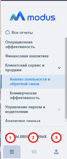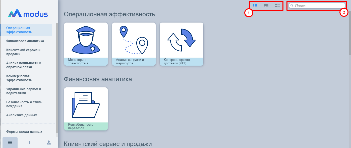 1. Селектор вида отображения отчетов (отображение селектора на Главной странице настраивается в настройках портала при помощи переключателя «Показывать селектор 'Вид отображения списка'»). Начиная с версии 3.11 селектор не отображается.